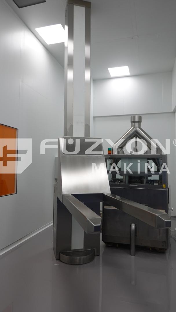 İlaç veya gıda sektöründe kullanılan tablet pres baskı makinelerine hammadde yükleme amacıyla özel lift sistemleri üretiyoruz.
